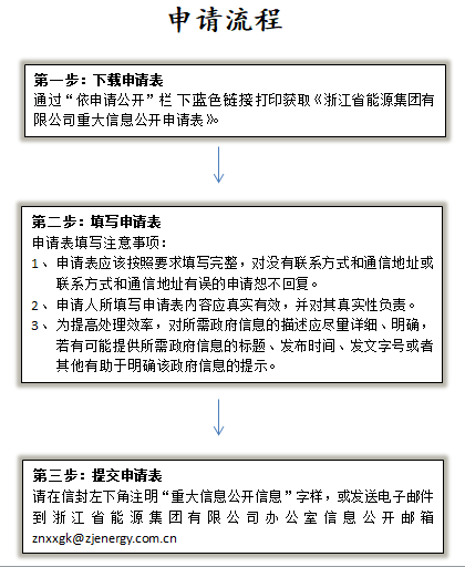 2. 網(wǎng)上申請。申請人可登陸浙江省能源集團(tuán)有限公司門戶網(wǎng)站的信息公開平臺, 直接在網(wǎng)上提出申請。