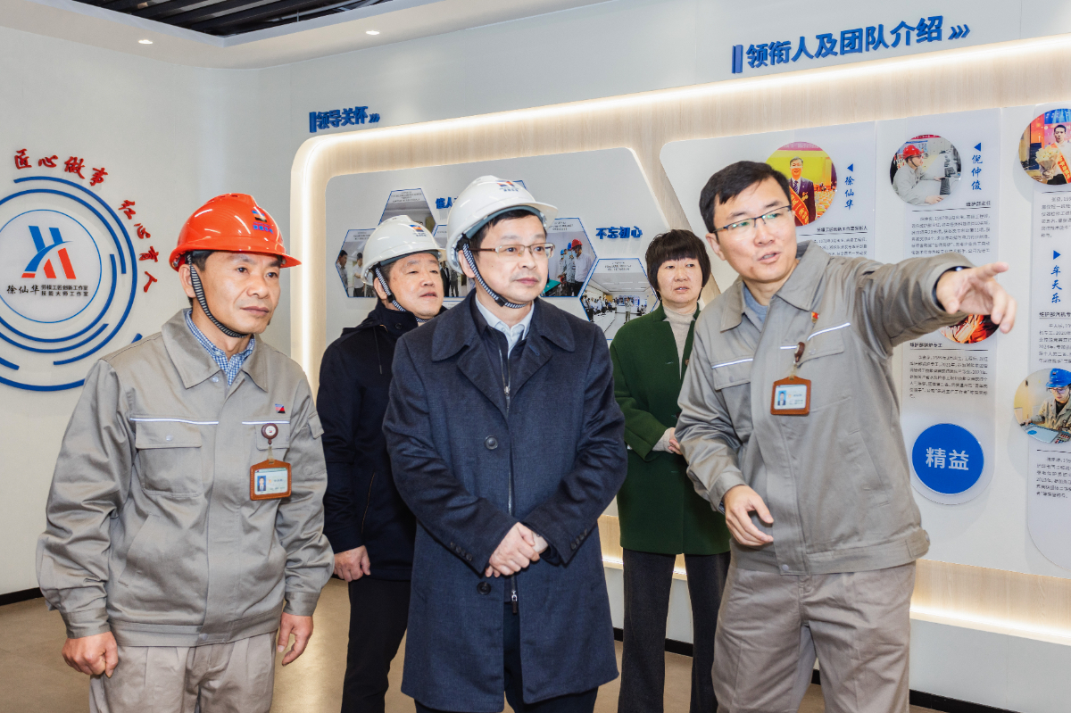 倪震一行到樂電徐仙華勞模(工匠)創新工作室參觀指導。 張立忠 攝