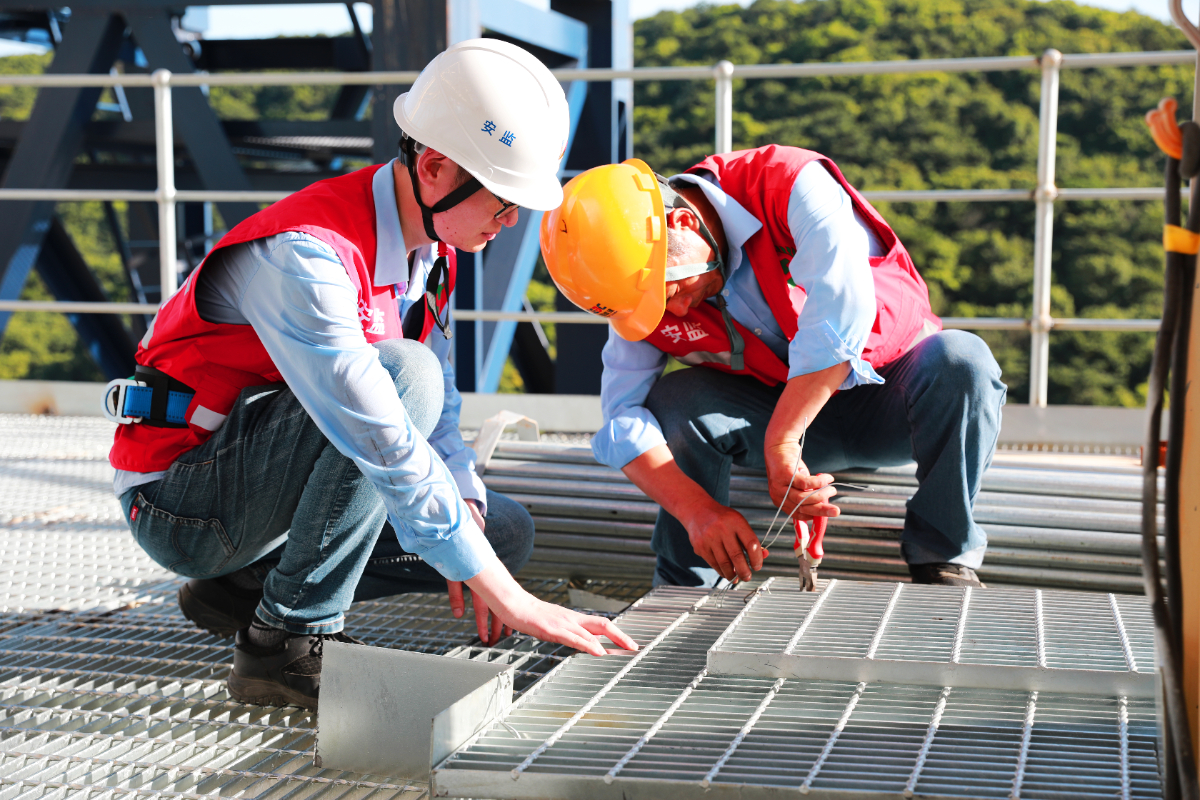 浙江電建安全員檢查鍋爐平臺鋼格柵加固情況。 張曉艷 攝