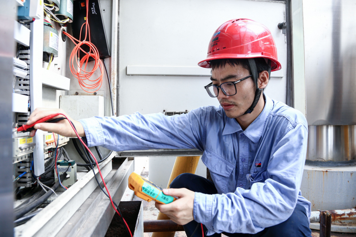 浙能一線電廠職工正進行日常檢查,護航發電設備安全,汗珠順著他的臉頰流下。 鄭慧瑗 攝