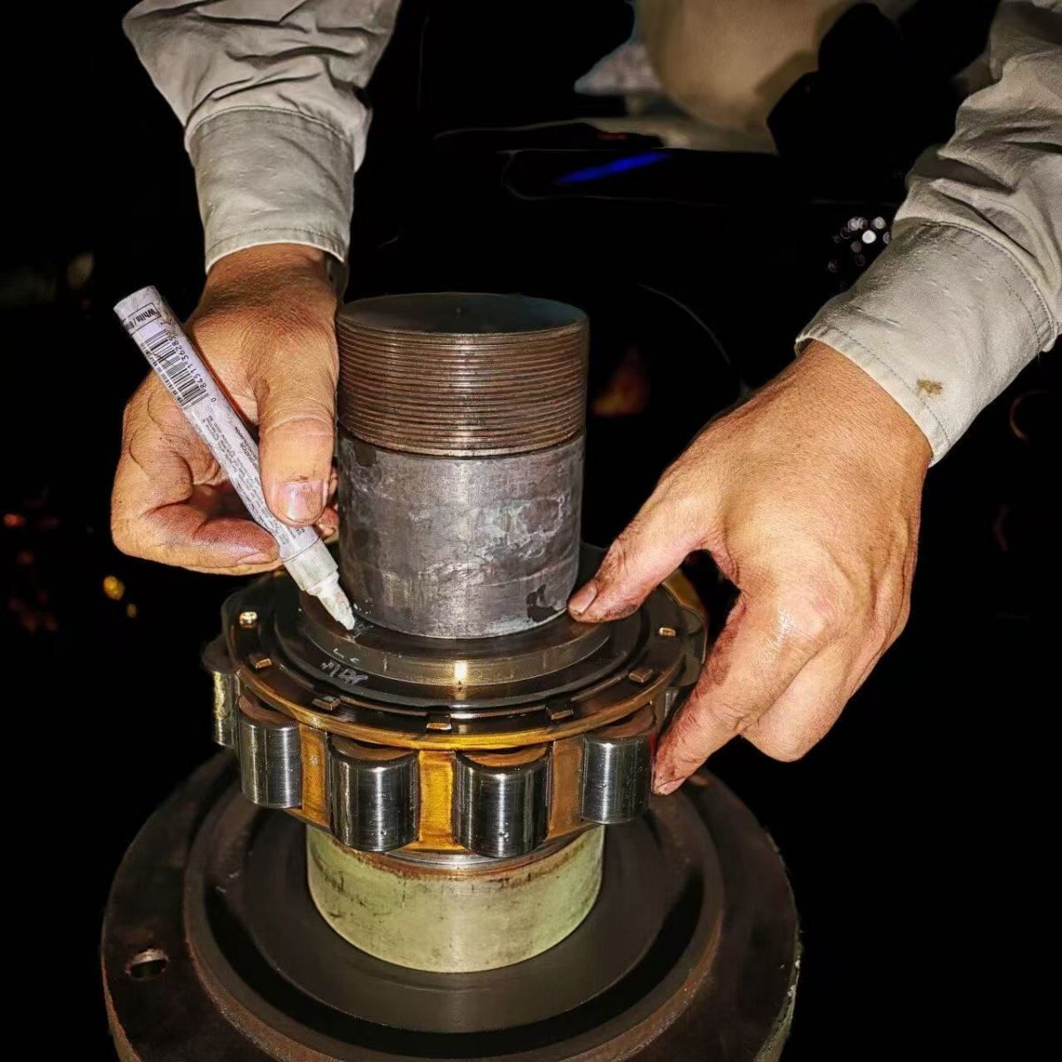 “機封是關鍵,拆解要小心,密封面絕對不能有劃傷?!蹦呓▊ザ⒅诵牟考?,手中的銅棒和撬棍用得恰到好處,汗水混合著油污在手中展開一道道深色的印記。