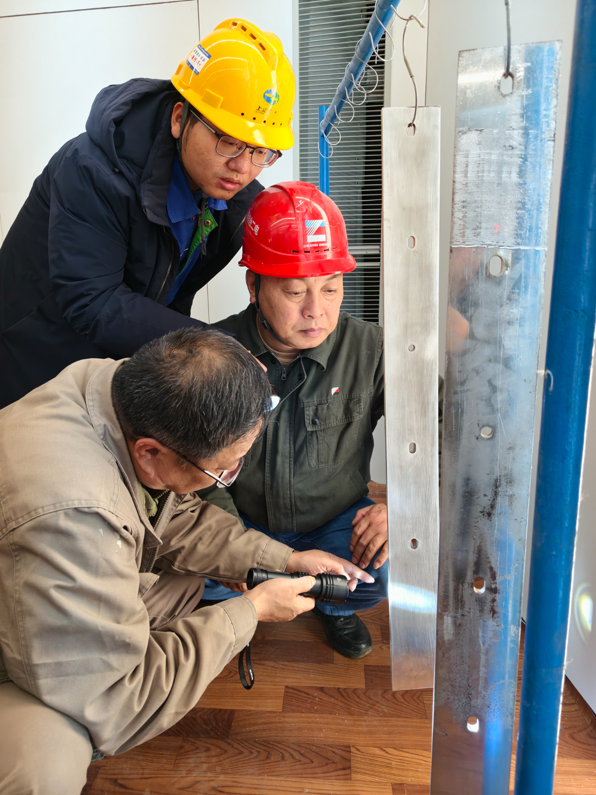浙能臺二電專業(yè)人員檢查靶板品質(zhì)。 劉凱銳 攝